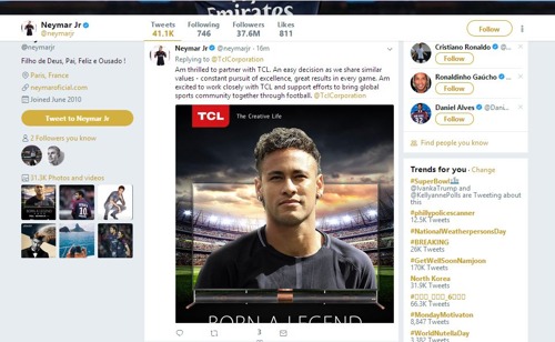 內(nèi)馬爾·達(dá)席爾瓦與大國品牌TCL簽約
