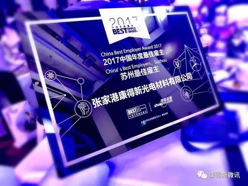 2018年1月12日,張家港光電公司榮獲智聯(lián)招聘2017“蘇州最佳雇主”。從文化體系、組織體系、激勵(lì)體系和成長體系4個(gè)維度,從雇主和雇員兩個(gè)角度立體評價(jià)雇主品牌與職場趨勢變化。夠?qū)I(yè),夠權(quán)威。