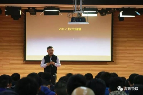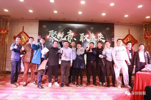 2018年2月2日,銳取召開年終總結大會。會上,銳取董事長張秋、副總經理廖海、副總經理侯大鵬及市場總監吳蕾,回顧2017,展望2018。