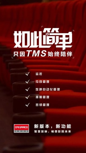 8月23日,BRITV在北京盛大開幕,中影巴可TMS以動(dòng)態(tài)演示形式亮相展會(huì),隨后并重磅發(fā)布TMS2.4版本。新增加了放映日志管理、售票系統(tǒng)排期導(dǎo)入、TMS故障告警、激光光源剩余小時(shí)數(shù)顯示等功能,真正成為實(shí)現(xiàn)影院自動(dòng)化放映的貼心管家。