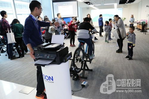 在騎行發電打印展區,父母與孩子可以體驗騎自行車,帶來無限樂趣!通過小朋友們快速地騎車產生電力,低功率的愛普生墨倉式M205 黑白無線一體機現場進行了樣張打印。還有記得在運動時帶上愛普生ProSense J-300運動手表,實時進行運動情況和心率的監測,為健康保駕護航!