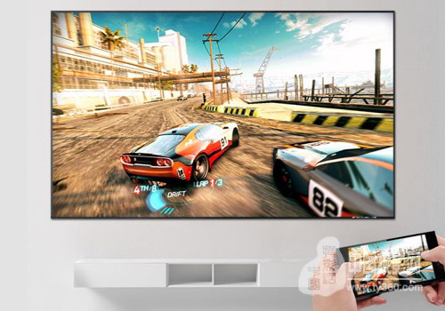 與此同時,還可以實現手機電視同屏功能,新年聚會隨時分享手機里的照片、視頻。還可以用百吋大畫面玩手游,親子活動更豐富。
