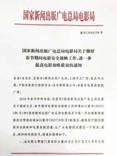 春節(jié)期間電影市場火爆,一家人其樂融融地到影院里看場電影已成為一種新的時尚。“春節(jié)檔”不僅成為新時代一種獨特的文化現(xiàn)象,更成為一年中最重要的電影檔期。為確保春節(jié)期間電影安全放映,進一步提高電影放映質(zhì)量,讓觀眾享受觀影的快樂,國家新聞出版廣電總局電影局于近日下發(fā)了通知,要求各相關單位確保春節(jié)期間影院安全放映和電影放映質(zhì)量,讓廣大電影觀眾度過一個安全、歡樂、祥和的傳統(tǒng)佳節(jié)。