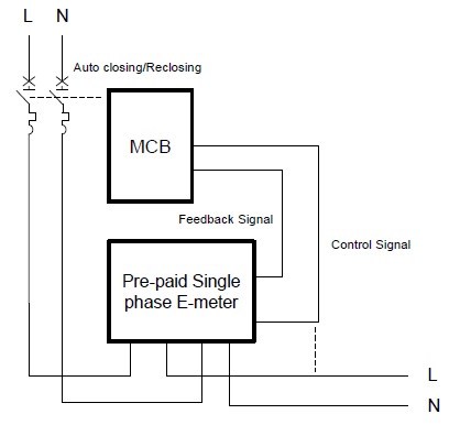 外置微型斷路器為全自動斷路器,具備欠費分閘、付費合閘、費控狀態指示、欠費脫口保持、狀態反饋等功能。根據設計要求,下圖所示為推薦的微型斷路器系統框圖。