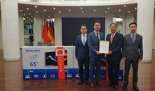 二月初,莊嚴肅穆的中國駐德國大使館迎來一批特殊的客人,他們是中國家電巨子——創維德國分公司的工作人員,原來,經過層層遴選,創維OLED電視成為了中國駐德大使館“外交禮品”。這一天,中國駐德國大使史明德先生為創維頒授“外交禮品”證書,在他們接過證書那一刻起,創維OLED電視便正式成為了中國駐德大使館的“外交禮品”,一方面體現了饋贈國雄厚國力,另一方面也承擔著對外合作交流中“中國名片”的重要作用。
