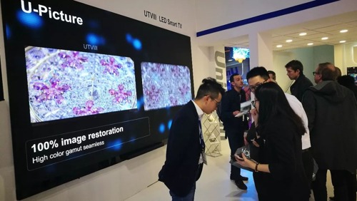 當?shù)貢r間下午兩點,洲明科技發(fā)布了一款自主研發(fā)智造的高端會議顯示利器——UTVIII商用小間距176寸LED一體機,產(chǎn)品采用軟硬件一體,洲明科技先進的可視系統(tǒng)(單反級逼真畫質(zhì)、3D信號輸入、任意多開窗顯示),結(jié)合國際知名品牌音響設(shè)備,帶給用戶極致視聽體驗。UTVIII是行業(yè)內(nèi)獨一無二的176寸LED大電視,標準化產(chǎn)品,現(xiàn)場預(yù)售12臺,吸引了大量客戶前來咨詢采購。
