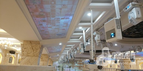 在周口稻香味道大酒店宴會廳,為了達成畫面要求,根據酒店空間的實際投射情況,BOXLIGHT寶視來為用戶量身定制多臺5500流明Coronado系列投影機,并配備多種鏡頭,及多臺激光投影機,打造層次遠近不同包括四周、地面等各種畫面,組合營造虛實空間,讓整個婚禮現場得以立體呈現,沉浸效果更佳。