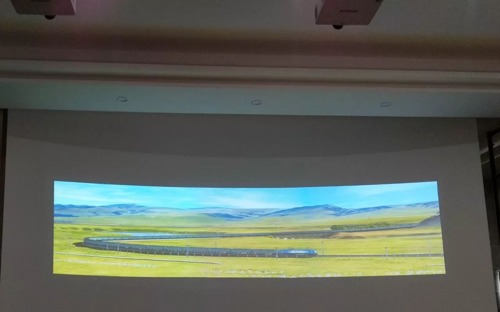 中國中鐵隧道局集團(tuán)是京張高鐵八達(dá)嶺站承建方,為了向各界人士展現(xiàn)此項(xiàng)目重大意義,特意建造了弧形大畫面顯示系統(tǒng),采用日立HCP-D867U以多通道融合方式呈現(xiàn)環(huán)幕大畫面影像,全面展現(xiàn)京張城際鐵路建設(shè)的輝煌成果。靚麗色彩、清晰畫質(zhì)讓人印象深刻。