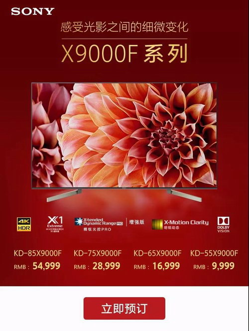 X9000F等系列電視新品搭載了索尼諸多獨家黑科技,并延續了極簡美學理念,不只將液晶電視的視聽體驗提升至全新高度,也為消費者們提供了更多高品質的產品選擇。