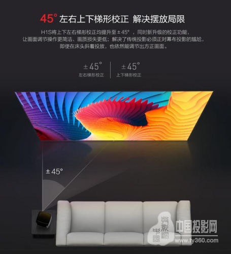 如果你在房子裝修時,并沒有預留智能影院的安裝位置,那么在選購時,請選擇帶有“梯形校正”功能的智能影院。具備這個功能的智能影院在安裝上就要方便許多,不需要正對墻面,即使是從側面投向墻面,畫面依然可以調整至方正。