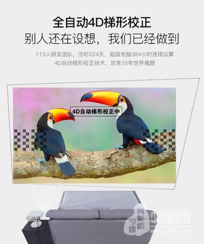 “4D自動校正功能,真的很好用,斜著也能投,而且畫面未變形,極大方便了用戶日常使用!