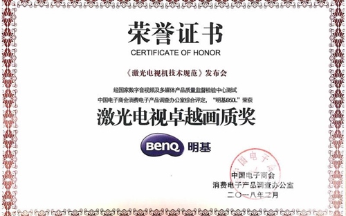 與此同時,明基認(rèn)為畫質(zhì)標(biāo)準(zhǔn)是激光電視需要規(guī)范的重點(diǎn)。畫質(zhì)包括分辨率、亮度、亮度均勻度、可視角、色彩等,構(gòu)成的整體視覺效果。夠大還要夠清晰,色彩還要真實,才是真正的大屏享受。送檢的明基i950L激光超投電視,在色彩、分辨率等方面表現(xiàn)優(yōu)異達(dá)A+標(biāo)準(zhǔn),給消費(fèi)者帶來驚艷的觀看體驗,獲得主辦方頒發(fā)的“畫質(zhì)卓越獎”殊榮。