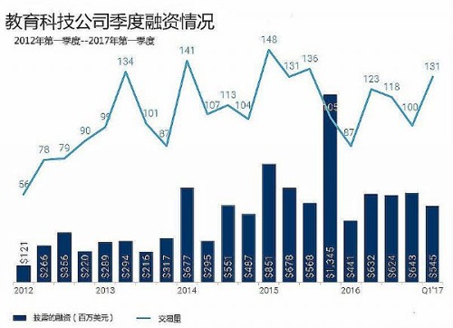 全球范圍內(nèi),2017年第一季度,對(duì)教育技術(shù)行業(yè)的投資顯著回暖。