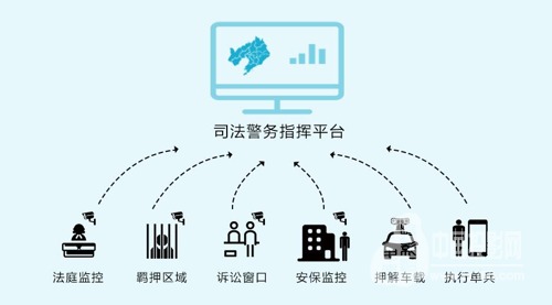 司法警務指揮平臺可連接監控攝像機、移動車載、執法記錄儀等采集設備,從而整合各類司法警務視頻資源,適用于押解出庭、值庭、處突反恐、囚車押解等各項司法警務工作。