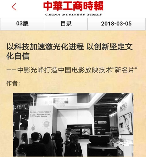 兩會期間,中華工商時報對中影光峰進行報道