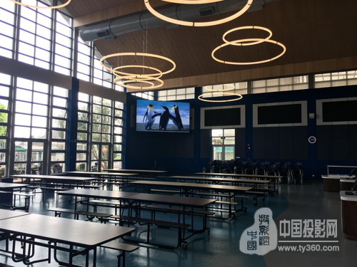 為了能夠讓學生隨時隨地感受學校的氛圍,便于師生、家長的互動,美國學校在餐廳內部安裝了4*4的拼接顯示屏,里面播放著學校的宣傳片等文化內容,讓學生們在就餐的同時,依然感受到濃濃的校園文化氛圍。