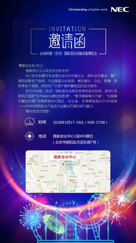 3月17-19日展會期間,現場將展示多款產品及解決方案,期待您撥冗蒞臨國家會議中心1層493展位,共享NEC投影的魅力!