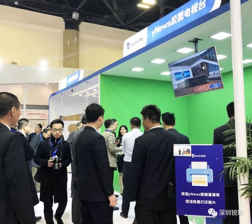 在校園電視臺(tái)體驗(yàn)區(qū),銳取精心布置了yNews系統(tǒng),集虛擬場(chǎng)景、實(shí)景應(yīng)用、線上直播、遠(yuǎn)程交互、云端發(fā)布等特色于一體,受到了與會(huì)者的強(qiáng)烈追捧。靈活多變的場(chǎng)景切換、全新的直播觀看模式以及專業(yè)的分享會(huì)和演講場(chǎng)景,不僅為師生打造一個(gè)自主探索,創(chuàng)新學(xué)習(xí)的新天地,更為家校互通提供了新方式,促進(jìn)校園新媒體時(shí)代的發(fā)展。