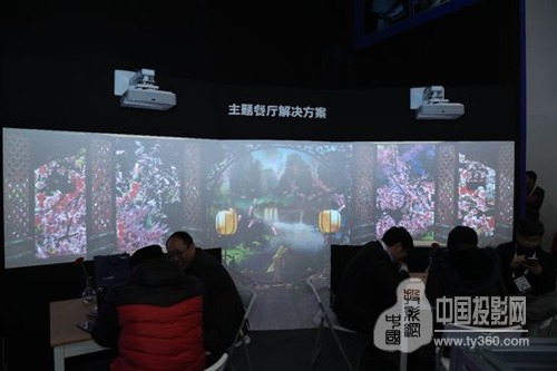 NEC搭建的主題餐廳解決方案,同樣吸引了大量觀眾圍觀。此方案使用兩臺NEC U321H+超短焦投影機與一臺NEC CR5450HL+豎投搭配進行拼接融合,令參展觀眾如置身真實場景之中,邊用餐邊享受視覺藝術盛宴,盡顯高端奢華品味,大大地提升了場景體驗氛圍。NEC投影機打造的非凡視覺體驗,為主題樂園行業提供了高效、專業、節省成本的全新解決方案。