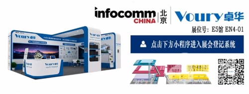 2018年4月11日至13日,Voury卓華將參展北京InfoComm,展位號為E5館EN4-01。Voury卓華作為室內(nèi)大屏顯示及拼接控制整體解決方案提供商,此次展會Voury卓華攜微間距、小間距、COB封裝LED顯示屏以及行業(yè)領(lǐng)先的網(wǎng)絡(luò)分布式系統(tǒng)等眾多顯控產(chǎn)品亮相。點間距更是涵蓋P0.9、P1.2、P1.4、P1.5、P1.6、P1.8、P2.0等多款行業(yè)領(lǐng)先的LED顯示產(chǎn)品。