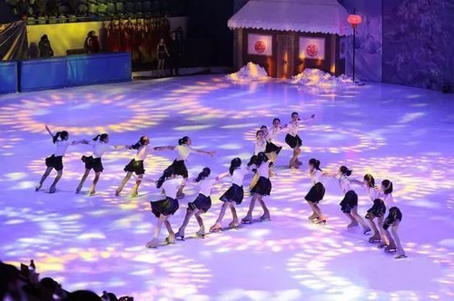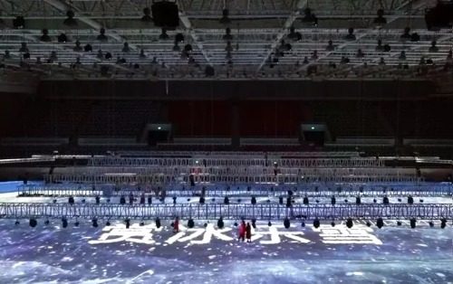 然而,作為冰雪文化,色彩總是單調的。例如,此次啟動儀式選擇的哈爾濱冰上基地,速滑館、滑冰館、花樣訓練館等本質是“冰質地面”,色彩單一。為冰雪王國添加童話色彩就成了一項技術工程。