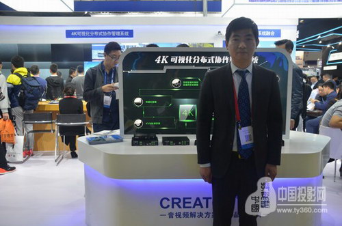 此次展會,CREATOR快捷展臺上,“4K”是最耀眼的亮點,而最引人注目的莫過于4K可視化分布式協作管理系統,其獨特的分布式去中心化架構,集矩陣、拼接、中控、傳輸、KVM坐席管理于一體,吸引著大批觀眾圍觀。對此次4K系列產品,郭總也表示,我們此次最大的吸睛點就是“4K”,我們的4K系列產品,兼容4K信號,與之前的產品相比,在技術實現了升級,性能也更加穩定。