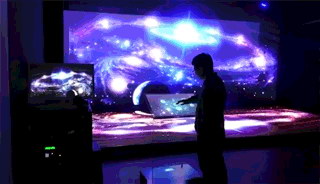在2018年3月中國家電及消費電子博覽會展會期間,投石科技為四季沐歌提供了55寸物體識別甩屏觸摸桌的租賃服務。該項目就是采用人機交互設備,圓形物體觸摸識別桌。
