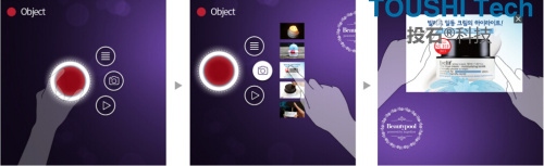 它可以使一臺顯示器或者觸摸屏的多媒體資料輕松“甩”至大屏幕,實現資源共享和互動,增強演示效果,為參觀者帶來人性化的體驗。它還可以直接識別不同直徑的物體,如:5、6、7、8、9CM的范圍的圓形物體,并播放對應的視頻及圖片。在此次展會中,投石科技給四季沐歌定制的展示軟件包含了六大類:居住類、酒店類、醫院類、學校類、工業類和農業類。