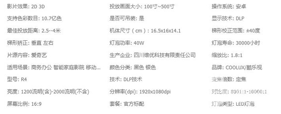 酷樂視R4風尚部分參數
