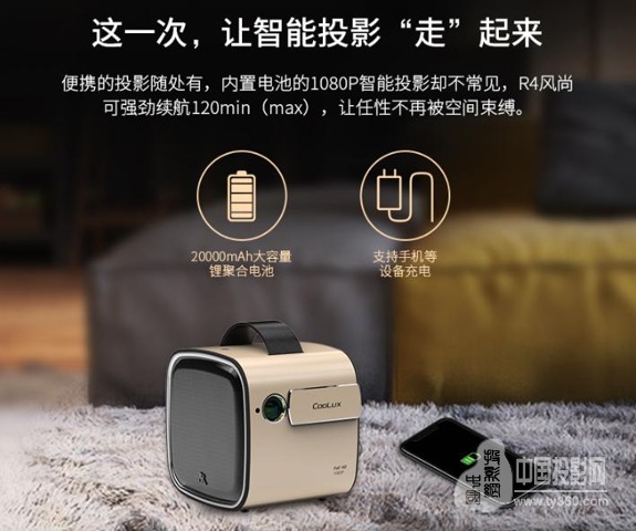 過(guò)去的智能投影由于受到電源的限制,在沒(méi)有電源的地方無(wú)法正常開(kāi)機(jī)播放,也僅僅只是便攜而已,酷樂(lè)視為此提出了“移動(dòng)投影”的概念,為R4風(fēng)尚特別內(nèi)置一塊20000mAh鋰電池,充滿電后足夠保障2小時(shí)續(xù)航時(shí)間。即使是旅游出差也能享受到觀賞影片或欣賞比賽的無(wú)窮樂(lè)趣。