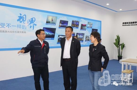 來訪領導先后參觀國畫激光投影機生產線、國畫激光投影展廳,現場了解了國畫激光投影業務的運營情況和產品體驗,并對國畫產品線開發和新業務模式拓展提出了指導意見。