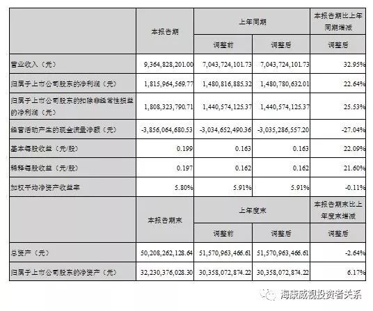 海康威視發布2018年第一季度報告:一季度單季實現營業收入93.65億,同比增長32.95%;歸屬于上市公司股東的凈利潤18.16億,同比增長22.64%。