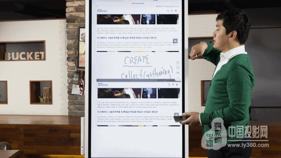“三星智能互動電子白板不僅僅是一臺顯示器。你可以在屏幕上書寫,可以把它連接到智能手機,可以運行程序,可以屏幕截圖,可以添加內容,更可以將內容進行保存。” Hyunho Choi解釋道。