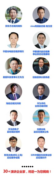 京東方劉曉東、華為何剛、創維賴偉德、海信劉洪新、TCL王成、康佳周彬、聯發科蔡明介、LG Display李廷漢、三星劉峻光、維信諾張德強、JDI瀧本昭雄等30多位全球知名企業總裁將出席于2018年4月9日-11日由工業和信息化部、深圳市人民政府共同舉辦的第六屆中國電子信息博覽會(CITE2018)同期活動,“2018中國國際顯示產業大會”并做主題演講,BOSS們已準備好!虛位以待有識之士共襄盛會!