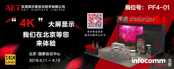 2018年4月11-13日,國際視聽集成設備與技術展覽會—Infocomm China 2018,將在北京國家會議中心盛大舉行,東莞阿爾泰顯示技術有限公司(簡稱:阿爾泰)屆時將盛大參展并誠邀您蒞臨PF4-01館展位參觀指導!