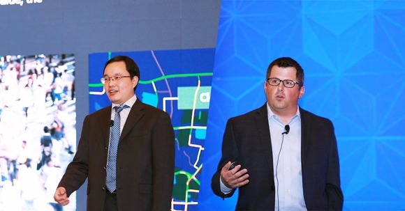 大華股份王飛(左)、英特爾Adam Burns(右)發表主旨演講