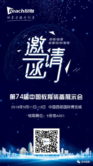 展會已然落幕,緣分還在繼續。“第74屆中國教育裝備展示會”將于2018年5月11日-13日,在四川成都隆重舉行,屆時,銳取將攜覆蓋校園全場景的全新智慧校園整體解決方案亮相,更全面深入的助力中國教育信息化的發展。