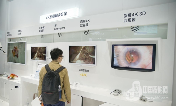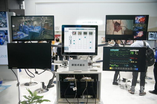 在4K影像解決方案展區,索尼利用4K術野攝像機MCC-S40MD、55英寸/31英寸4K液晶監視器LMD-X550MC/LMD-X310MC、31寸4K 3D液晶監視器LMD-X310TC、4K播放器PMW-PZ1等設備,組建起從信號采集、信號傳輸到畫面監看的完整4K鏈條,從而為醫療用戶提供完整的4K解決方案。同時,利用純熟的IP傳輸技術及終端,4K畫面可通過光纖進行遠程轉播,遠端觀眾可輕松獲得手術室內的實時4K畫面和音頻內容。