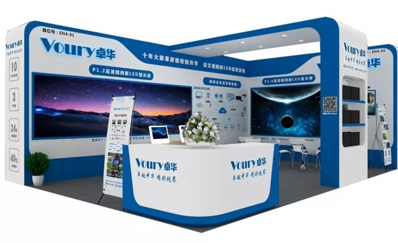 北京InfoComm,Voury卓華展覽主屏采用P1.2微間距LED組成,整屏尺寸為4.8m×1.35m,整屏分辨率將達到3840×1080;輔屏采用P1.4微間距LED組成,整屏尺寸為2.88m×1.62m,整屏分辨率將達到1920×1080。除此之外還有P0.9、P1.5、P1.6、P1.8、P2.0等不同點間距的顯示屏進行展示,產(chǎn)品涵蓋面非常廣。