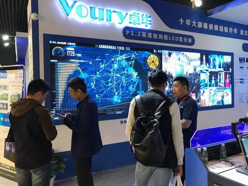 北京InfoComm,Voury卓華展覽主屏采用P1.2微間距LED組成,整屏尺寸為4.8m×1.35m,整屏分辨率將達到3840×1080;輔屏采用P1.4微間距LED組成,整屏尺寸為2.88m×1.62m,整屏分辨率將達到1920×1080。除此之外還有P0.9、P1.5、P1.6、P1.8、P2.0等不同點間距的顯示屏進行展示,產品涵蓋面非常廣。