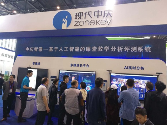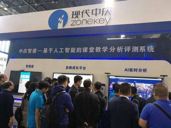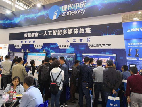 與武漢同期舉行的中國(鄭州)國際教育裝備博覽會(huì)中慶的人工智能創(chuàng)新應(yīng)用——中慶智課也吸引眾多參展嘉賓在展臺(tái)駐足。