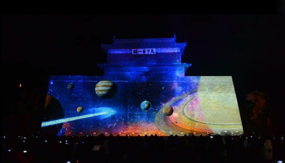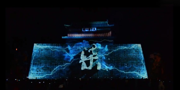 在節(jié)奏極強(qiáng)的音樂(lè)聲中,序幕被拉開(kāi)。隨之而來(lái)的是震撼的倒計(jì)時(shí),漆黑的夜色下,浮雕式的數(shù)字在藍(lán)色光暈的烘托中仿佛從城墻中躍出,增添了光影秀的立體感和沉浸感。