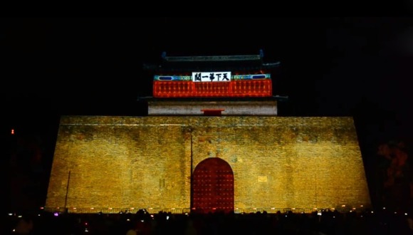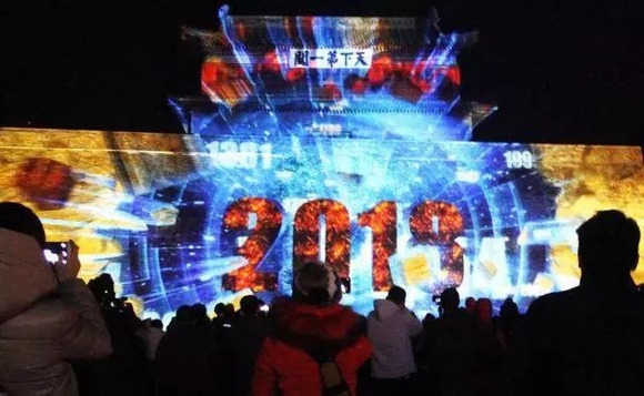 正月十五元宵節(jié)夜晚,一場(chǎng)璀璨奪目的裸眼3D古建光影秀在“天下第一關(guān)”城樓震撼上演。為打響2018年山海關(guān)古城年博會(huì)的收官之戰(zhàn),此次光影秀可謂匠心獨(dú)具,不但引進(jìn)高科技投影技術(shù),就連現(xiàn)場(chǎng)音效也霸氣十足。夜幕降臨,一場(chǎng)穿越古今的3D燈光大秀在山海關(guān)的古城樓上恢宏呈現(xiàn),為前來(lái)觀看的市民們獻(xiàn)上了特別的元宵節(jié)祝福。