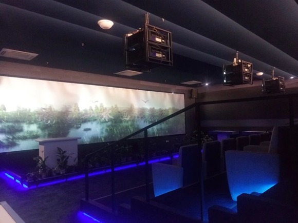 3D影院由6臺PJ LU6000投影機兩兩疊加,組成3組3D畫面,再融合成一個9m×2.5m的大型畫面。參觀者通過佩戴專業的3D偏振眼鏡,可以看到一個立體、真實,與傳統宣傳片不一樣的全新視覺畫面。