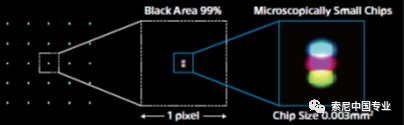 作為Micro-LED顯示技術(shù)的產(chǎn)物,索尼Crystal LED“黑彩晶”顯示系統(tǒng)令人矚目之處,是精細(xì)的LED晶體顆粒,0.003 平方毫米的顆粒尺寸是其他普通LED的百分之一。更小的晶體顆粒,無疑加大了產(chǎn)品制造的難度,也突顯出索尼在顯示領(lǐng)域的研發(fā)優(yōu)勢(shì)。