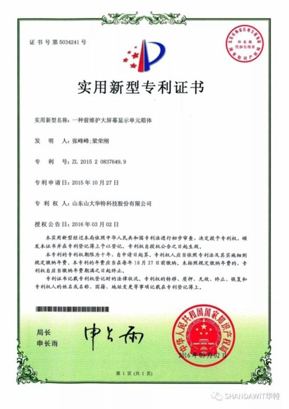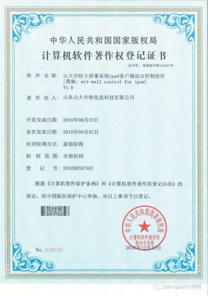 至此,我公司已獲得“一種復合屏幕用的熱熔膠涂抹裝置”發明專利一項,“電動光機引擎調整臺”等實用新型、外觀專利七項,“電動前維護控制系統”等軟件著作權22項。專利和軟著的獲得與我公司多年來在研發上的大力投入息息相關,與我公司在對產品創新上的不斷堅持密不可分。專利方面,大至整個DLP箱體的結構設計,小到屏幕復合上0.01mm的細微調節,我們都經過成百上千次的試驗,最終達到產品從整體到細節的趨于完美。軟著方面,我們充分考慮用戶的使用環境及使用習慣,針對不同場所、不用群體、不同行業、不同平臺都進行細致的劃分,使我們的產品用戶體驗更加完善。