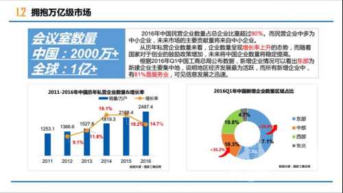 此外根據(jù)相關(guān)機構(gòu)統(tǒng)計,中國擁有2000萬以上企業(yè)會議室數(shù)量,外加政府單位和事業(yè)單位的會議室數(shù)量及海外會議市場,潛在的會議市場將是十分驚人。龐大的基數(shù)和高速的增長率,反映了一片海域遼闊的新藍海急需有待開發(fā)。