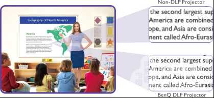 在窗簾不遮光、幕前燈光較亮時,投影機亮度不足會使畫面偏暗,色彩失真;低分辨率則會令表格與文字模糊一團,無法分辨。如何解決這個問題,讓教室中每個學生都享受到清晰精彩的投影大畫面?明基有辦法!