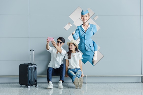 走累了,坐下靠靠,給自拍再增添一筆藝術