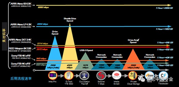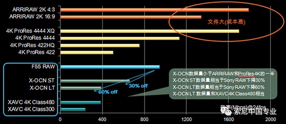 與Sony RAW格式相比, X-OCN的數據量要小很多。這意味著更長的記錄時間,更少的拷貝傳輸時間,更高效的后期流程。
